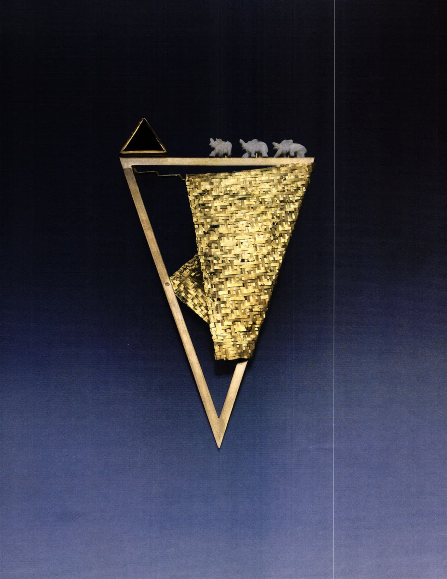 In 1978, she temporarily abandoned the textile work in a series of "elephant brooches." These works had an amusing narrative quality as tiny herds of ivory elephants marched their way over agate landscapes.