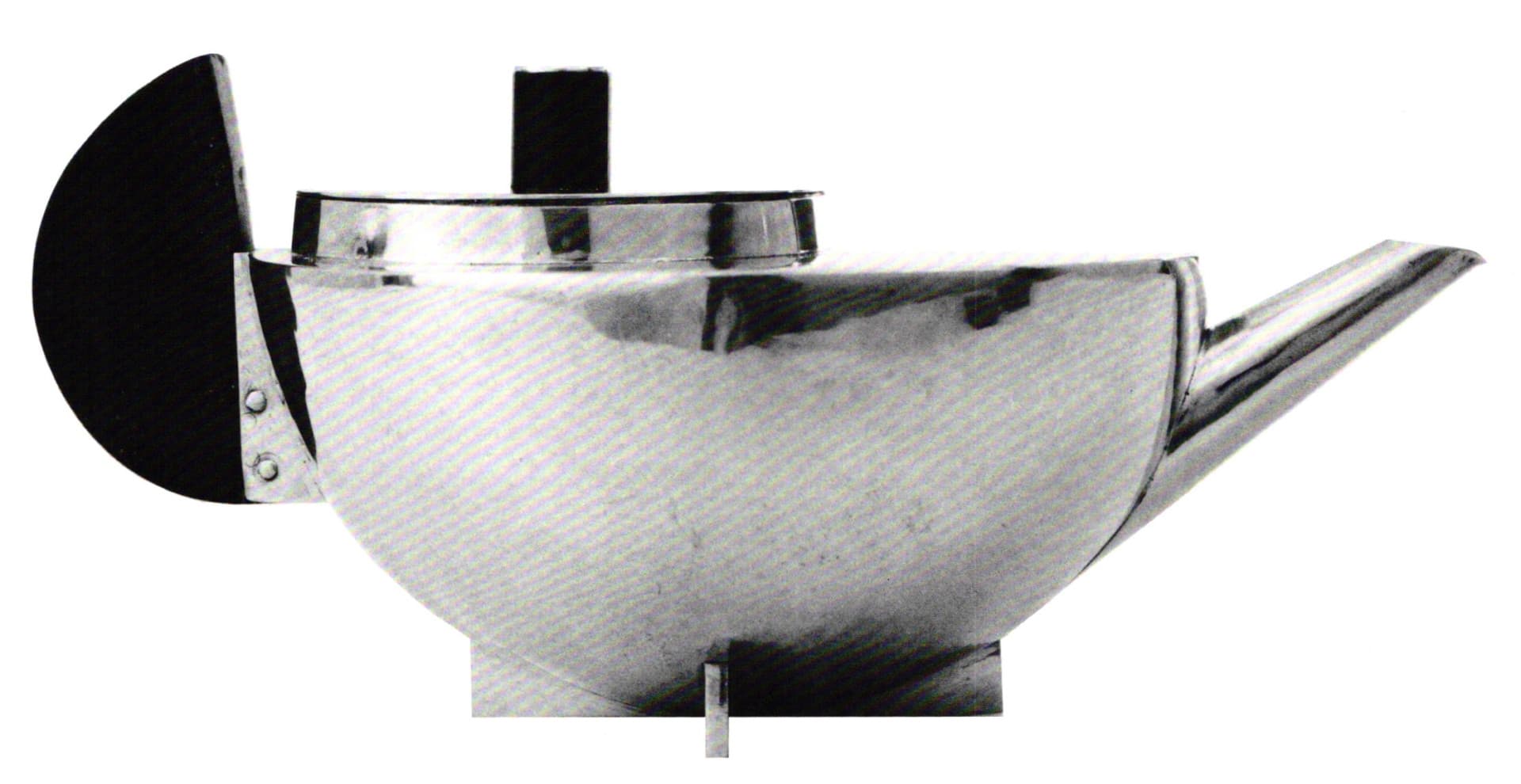 Functionalism, a fundamental tenet of the Bauhaus, was also of importance to Moholy. Brandt has stated that everything was tested before it left the workshop—teapots had to be well balanced, pour properly and not drip. Yet, surprisingly, the solutions for handles, while visually exciting, were often functionally dubious. The small, solid ebony handles on Brandt's teapots seem difficult to grip. Several students' use of a sweeping arc, made of a flat piece of metal imaginatively combined with a right angle, appears functionally, awkward. The same can be said of a gravy pitcher by Wagenfeld that was designed to be gripped by two small wooden stubs emerging from opposite sides.