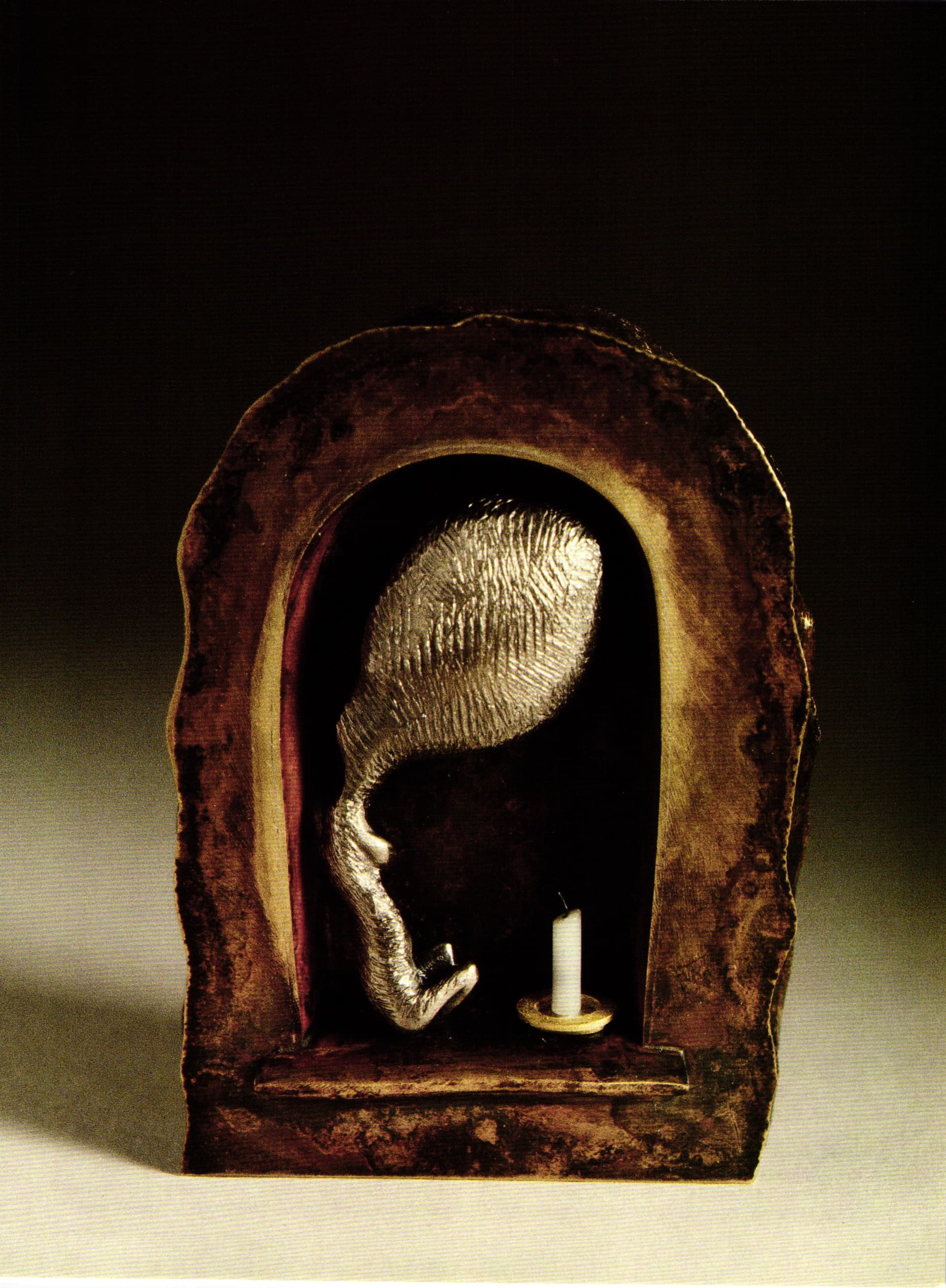 To a certain extent, Metcalf's jewelry does reach out and touch his audience with a sensitive and emotional form of visual journalese. These are "readable" universal messages filtered through an anguished psyche. One of the risks he has taken is to embrace caricature and allegorical ornament in a discipline that is far from adversarial. There is no question about Metcalf's need to expose his spleen and engender emotions in the viewer. These emotions may be amorphous and difficult to pinpoint, but he does seem to voice the "angst" of "everyman" and "everywoman." In looking at these caricatures and allegories mirroring our world, one enters the universe of this jester's caprices where the "sleep of reason produces monsters" and where we all can momentarily wear the motley.