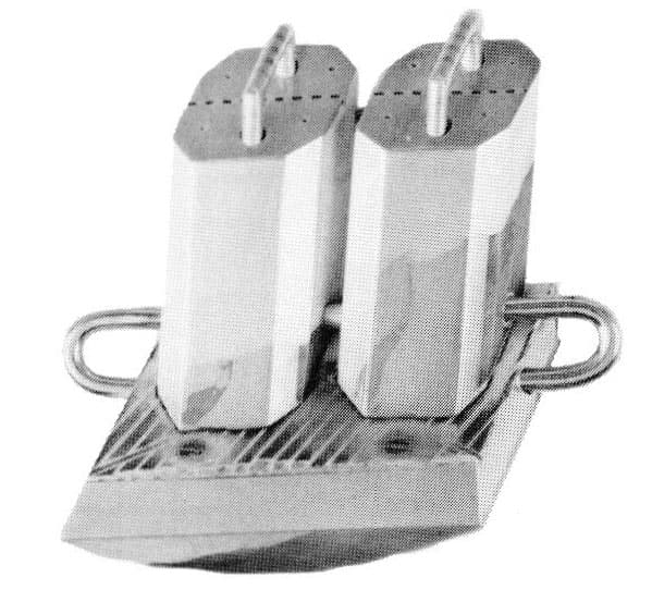 The Bridge Project, constructed during the Brooklyn Bridge Centennial at Madison Square Park, is Bury's latest, and one of his most interesting works. This is the first site-specific project to be fabricated within a large American metropolitan area. Approaching it from a distance, one immediately responds to the iconic presence of this structure set within the bowered atmosphere of the park. Two l2-foot high wooden pyramidal shapes face one another with a centralized tiered section flowing down the base of each section. This inclined triangular shape is a recurrent form that has intrigued Bury since his first sitings in Israel, and in this piece, variations on triangular shapes play an important role. The triangular sheet metal element that spans the two pyramids not only reflects the Brooklyn Bridge in a symbolic manner, but the references to the surrounding architectural structures-the Flatiron Building with its narrow wedge-shaped iron facade and the Mutual Life Insurance Building with its ascending terraced stories capped with a pyramidal shape - conjure up other formal connections and building processes.