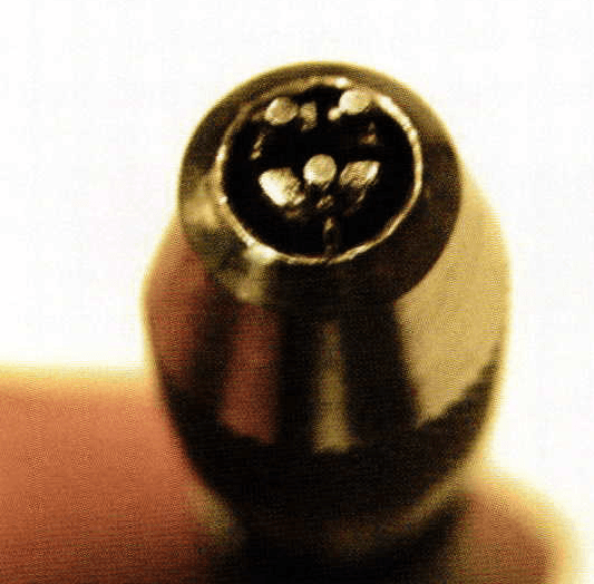 This is a ¾ down view so you can see the way the collar was widened to accommodate the extra width of the head with the added wires. I took the largest vise in the four vise set to make the holder with. Take off the tip, so the 4 tips are exposed. Take some 18 ga. carbon steel wire and anneal it.