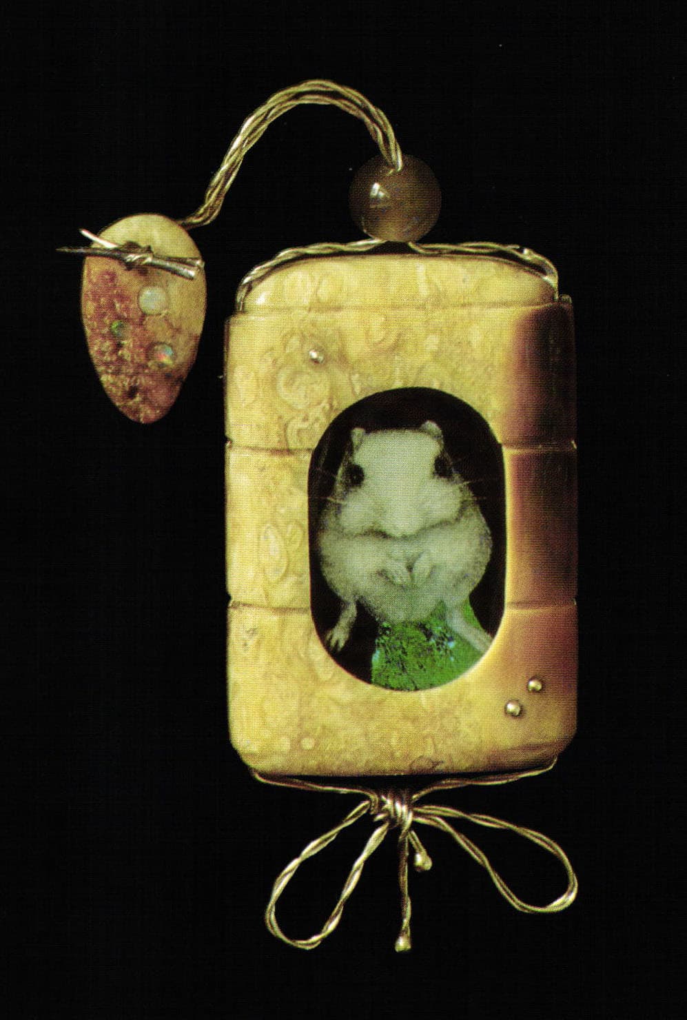 The enamel is then done by Daniela on fused layers of glass (clear over a dark background) rather than on the more traditional copper. With semi-opaque Thompson Enamels, she builds up a miniature relief sculpture, the thickness of the enamel grains determining the translucency of the image. Although the resulting enamels can be extremely detailed and highly realistic, Daniela insists that she cannot draw.