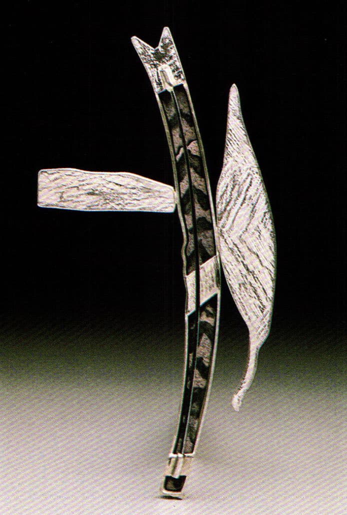 In 1988, Jamie Bennett unveiled a series of electroformed copper and enamel brooches that appeared to be a radical departure from his previous work. Unlike the cool, abstract restraint he employed earlier, these new pieces seemed to pulse with an internal force, from a visceral, organic, evocative center. What this work did share with its predecessors were signs of the struggle to tap a heretofore unexpressed language from the ancient medium of enamel jewelry. To unleash that potential, Bennett had long sought ways to break the linear rigidity and technical tyranny that have bound the medium.