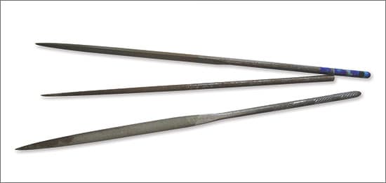 Featuring various bent and curved shapes, these files fit into odd internal surface profiles. They were used extensively in the past for working on carved and chased steel dies intended for stamping out jewelry and other metal shapes. Years ago you could find dozens of curves and shapes, but today the tools are difficult to come by, so your best bet is to make your own.