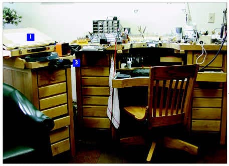 Jeffrey Johnson has two stores, 18 bench jewelers, and over 100 employees-and he still has time to work at the bench. "I wouldn't be who I am without the bench," he says. That's why he's got one set up in his office among leather arm chairs, file cabinets, and a desk.