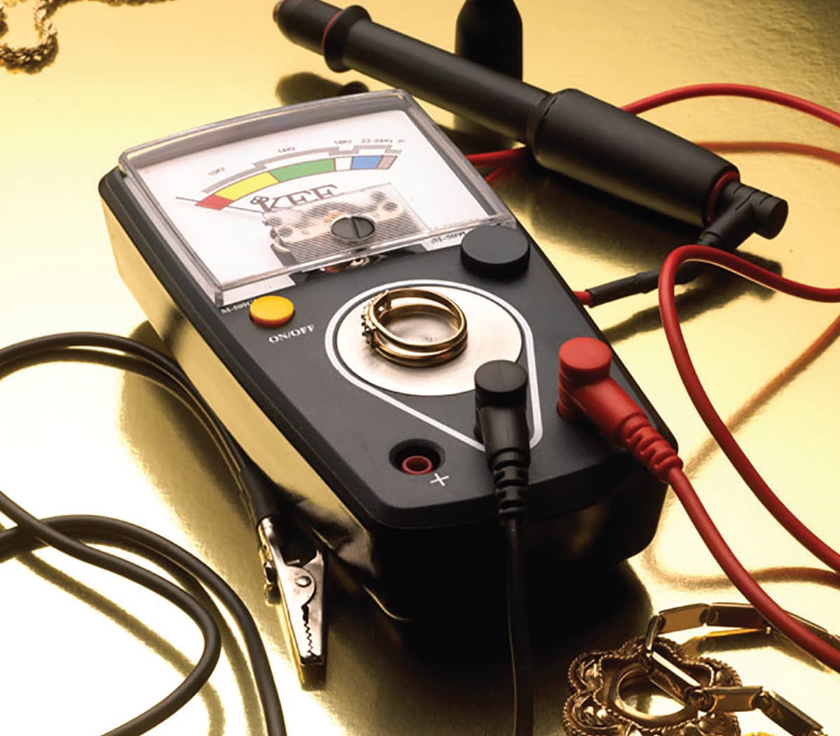 Designed to be user friendly, the Kee Gold Prospector gold tester offers a nondestructive way to identify gold alloys from 10k to 24k in all colors. Operating on one AA battery, the upgraded tester now features an optimized pen probe to enhance the tester's resolution, stability, and battery life. In addition, it features an easy-to-read analog meter movement. Weighing 12 ounces, the tester measures 6.5 inches by 3.25 inches by 1.75 inch. Contact: The Berco ToolGuys, 29 E. Madison St., Ste. 550, Chicago, IL 60602; 1-312-782-1050; fax 782- 4441; e-mail info@bercocompany.com; bercojewelry.com.