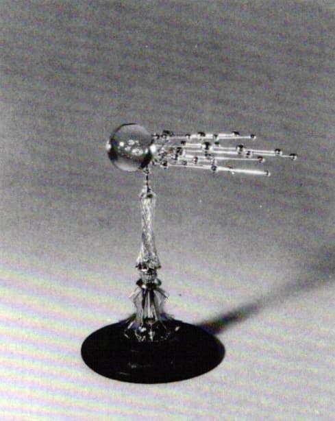 The Gesellschaft für Goldschmiedekunst and the Glashütte Limburg in Germany organized a competition to invigorate the thousand-year-old art of combining metal with glass. The Glashütte Limburg is an internationally renowned firm that still makes handblown glass for lamps. They supplied the gold - and silversmiths with massive glass balls of about seven centimeters in diameter, each to be transformed into an art object without practical purpose. The 82 entries came from all over Europe and the United States.