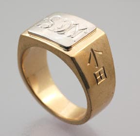 This ring is a hand engraved 14-karat yellow gold ring with a platinum top. The ring shows some surface abrasions and percussion marks (normal wear). Re-finishing with standard abrasives and then polishing could wear away too much of the surface and the detail of the engraving. I used the following steps to re-finish this ring.