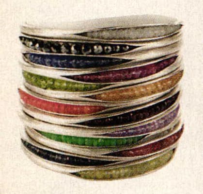 Second Place: Nina Basharova of New York City for her platinum silver bangles with a variety of colored stones (left).