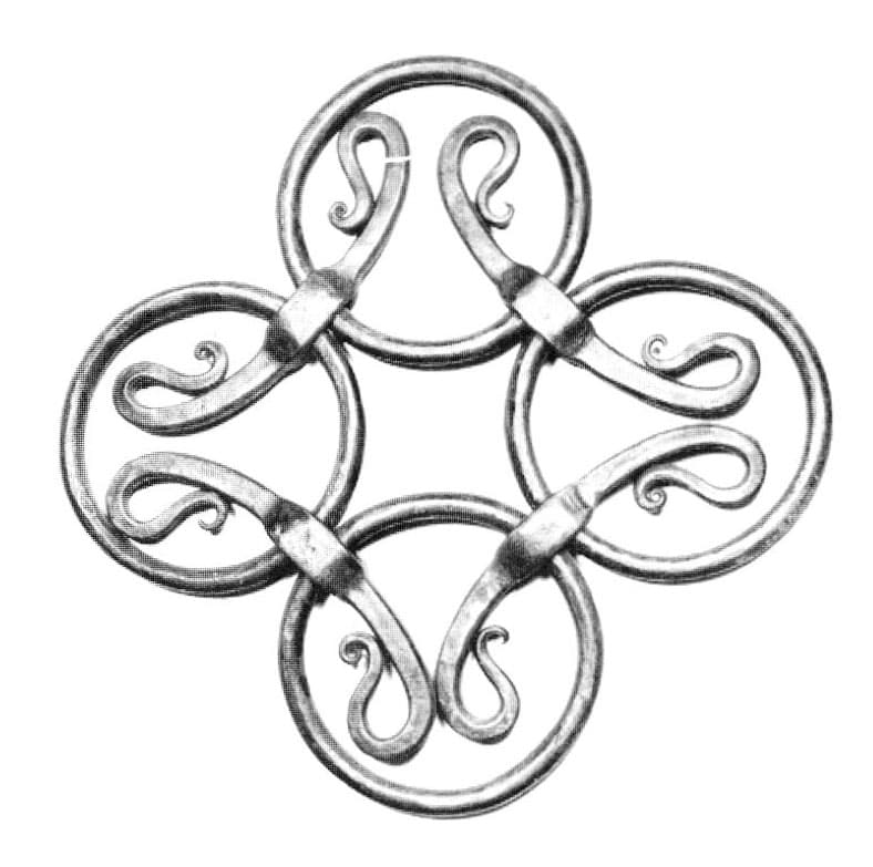 By necessity, Yellin's architectural commissions were represented in the current exhibition through drawings and photographs. However, the fundamental issues addressed in these large projects were well illustrated by the smaller objects on view. Iron fragments and ornamental studies suggested the infinite variety of motifs which Yellin infused into his work. A theme is established, and variations abound; pattern is suggested, but it is never regular nor stereotyped. In an interior gate with variations, what appeared at first glance to be a regular allover pattern was actually a myriad of varied grotesques and floral designs. By incorporating these irregularities into his work, Yellin continually emphasized the plastic nature of the medium.