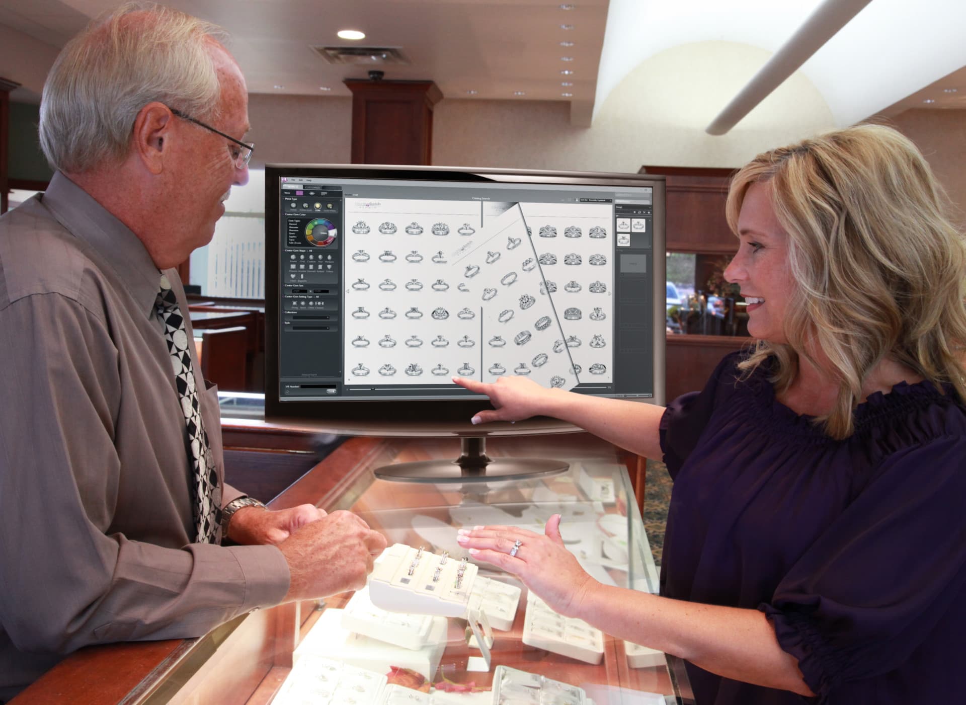 To make the CounterSketch system a reality, the Gemvision team embarked on what seemed like an impossible assignment. Could they develop a simple way for customers to play a role in the complex process of creating a piece of jewelry on a computer-and see instant results on screen? Both companies quickly realized that the key was to create what they called a Starting Point Inventory of models, then figure out a set of parameters for alterations that a customer could make-with the help of an experienced jewelry salesperson who understood the rudimentary basics of design.