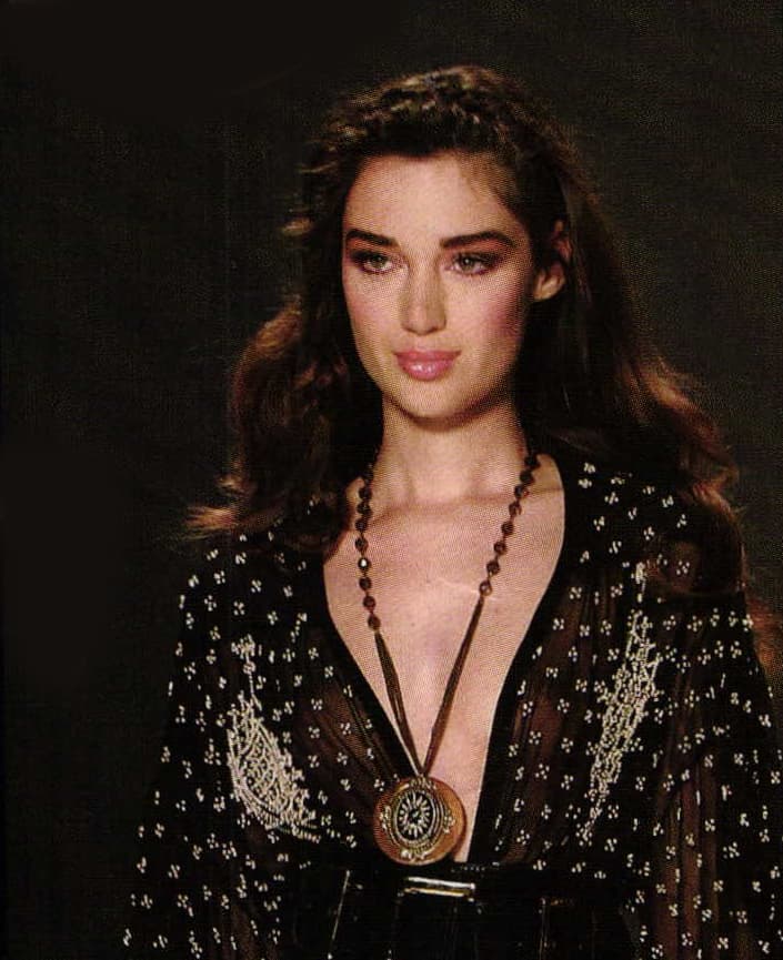 Joanna Mastroianni's black-and-white checkered coat with faux fur cuffs and collar is cinched by a wide black belt. But that isn't enough; the black leather is studded with large silver and blue sand dollars. Anna Sui ties together a midnight blue Cossack-style dress with a wide, gem-studded leather belt. She creates a military look by adding a wide, gold chain belt, complete with gold buckle and tassel, to a short black skirt and coat.