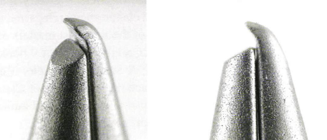 The flat spot in the bottom jaw keeps them in the notch of the prong as you bend them so it doesn't slip out and mar the end of the prong.